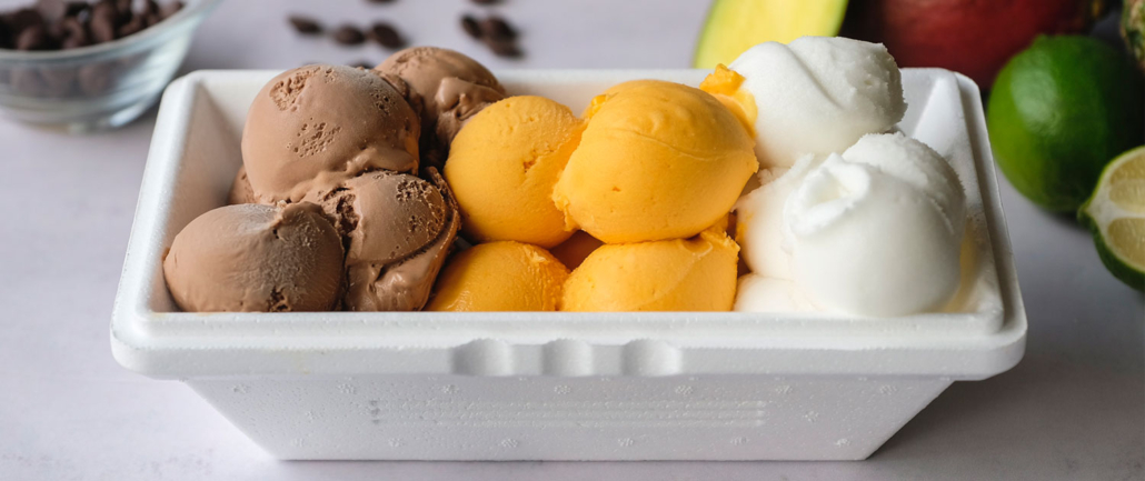 Du kan vælge mellem store containere med is à 5 liter eller små containere à 2,5 l., og du bestemmer selv hvilke varianter du ønsker ud fra vores aktuelle sortiment. isskeer medfølger.