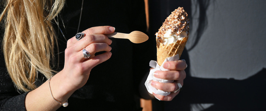 Alle vores is toppes med lækre toppings som selvfølgelig også er –hjemmelavede. Prøv bl.a. vores friskpiskede hyldeblomstguf, hjemmelavet karamelsauce, marengskys, rabarberkompot og meget mere.